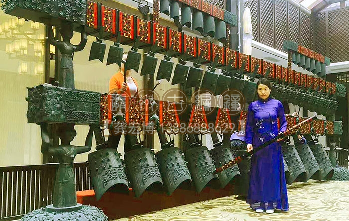2017年5月5日,西安漢樂府酒店在我公司定制的45件曾侯乙編鐘安裝完成,這套能夠演奏的大型編鐘陳列在漢樂府酒店大堂中心,凸顯了酒店的文化氛圍,在漢風格的裝飾中起到非常理想的裝點作用,提升了賓客的體驗感受,據(jù)悉,酒店將于6月份試營業(yè),屆時到訪的賓客可以感受到富有中華文化氣息的別樣體驗。